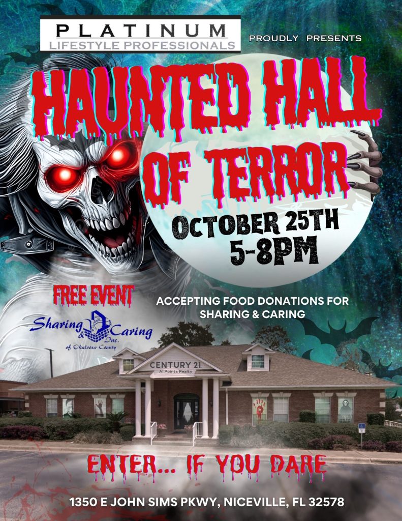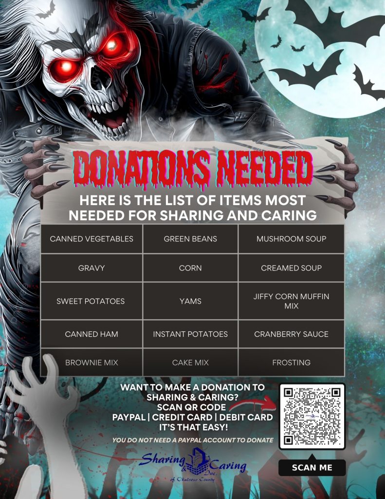 Bring Non-perishable food items for Sharing n Caring Niceville - help us spread the Halloween Spirit!